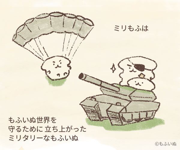 オリジナルの子犬のキャラクター「もふいぬ」の仲間、ミリタリーもふいぬ こと、「ミリもふ」登場!