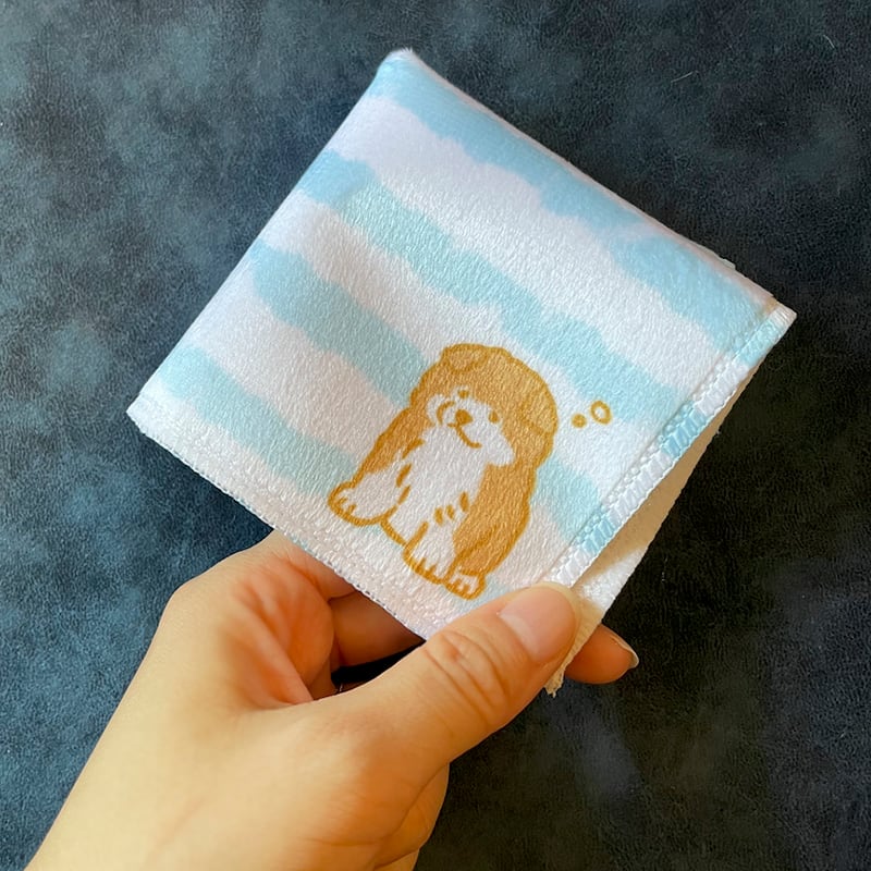 秋田犬の子犬たちが描かれたハンカチ。