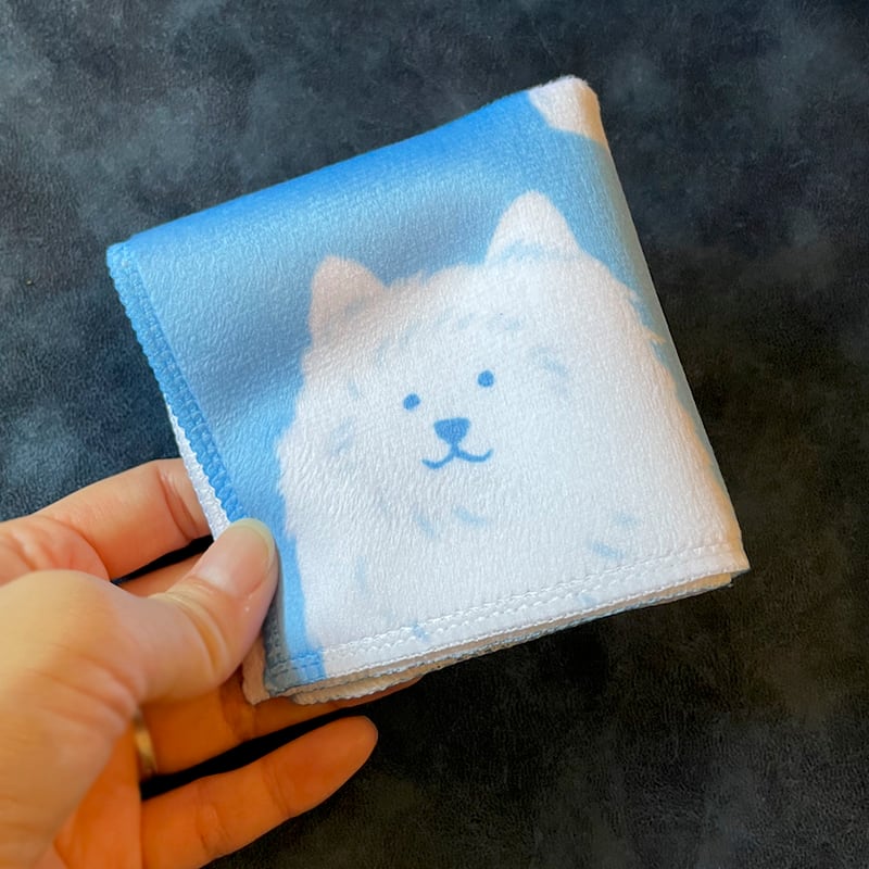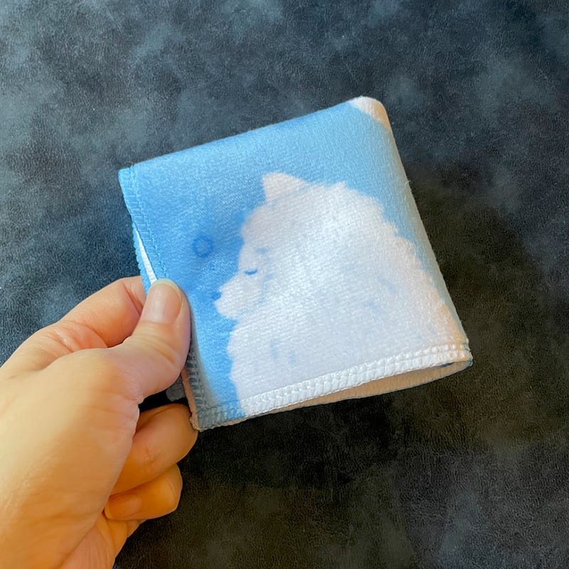 折り畳んだ時にサモエドちゃんが現れるデザインになっています。その日の気分でお好きなポーズの子を選んでくださいね!